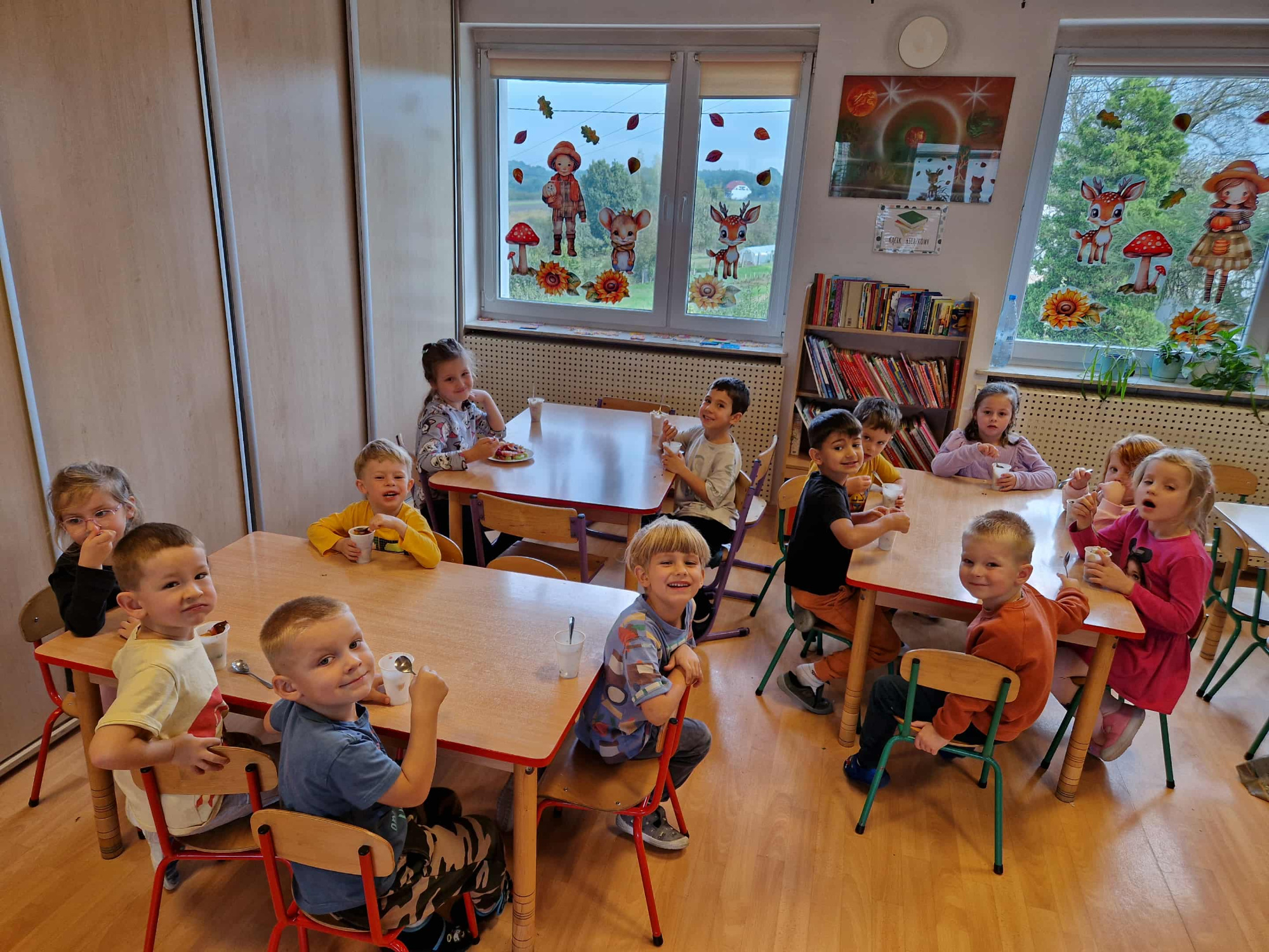Dziś całym Przedszkolem świętowaliśmy Dzień Peczonego Ziemniaka. W tym dniu, na obiad była zupa krem z ziemniaków, placki ziemniaczane a na podwieczorek pieczone ziemniaki z gzikiem, oprócz tego dzieci robiły ludziki z ziemniaków, pieczątki i zawody sportowe a także zagadki związane z ziemniakiem :)